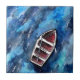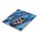 obras de arte tradicionales de acuarela con un bote salvavidas vacío o un bote de remo que atraviesa un océano muy azul como baldosa cerámica decorativa.