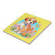 Baldosa de cerámica con la imagen de un cachorro adorable sentado entre las flores. Se ve muy feliz de estar rodeado de flores y mariposas. El regalo perfecto para dar a los que aman los perros perritos. Contiene contenido generativo.
