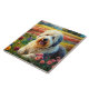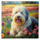 Azulejo de cerámica del perro pastor inglés antiguo en un campo de flores. Agrega esta imagen a otros productos. Agrega tu propio texto también. Muchos animales en mis tiendas.