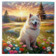 Perro Samoyedo sentado en un prado de flores. Rompecabezas, planificadores, cuadernos con este diseño en mis tiendas.. Muchos diseños de mascotas y paisajes en mis tiendas. Agrega este diseño a otros productos. Agregar texto.
