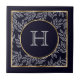 Magnífica tela cerámica decorativa de la Marina Monograma Dorada Personalizable. Presenta un hermoso patrón de hojas sobre el azul marino oscuro de medianoche con un monograma gris claro personalizable en un marco de acento dorado. Le invitamos a visitar nuestra tienda Zazzle, Simon & Grace, para ver productos a juego y más. Póngase en contacto con nosotros si necesita ayuda.