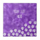 Tejas de perro blancas al estilo personalizado imprimen azulejos de cerámica. Fondo de color morado. Editar texto para hacer que estos azulejos decorativos sean únicos. Idea de regalo para los amantes del perro y sus mascotas.