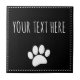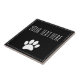 Dibujo de la pata del perro con fondo negro impreso en blanco. Versión cuadrada con puntos. Baldosas de cerámica con texto personalizado. Idea de regalo para los amantes del perro.