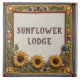 "placa con el nombre de la casa personalizado", "placa con el nombre de la casa personalizada", "signo de texto personalizado", "azulejo cerámico de la casa de los girasoles", "flor de girasol floral mediterránea", "flores amarillas de oro verde de época", "naturaleza tradicional de las vacaciones de verano", "apellido familiar", "señalización de la casa de vacaciones europea", "casa rural rústica decorativa"