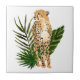 Cheetah Outlook I de Annie Warren. Una gueparda de color acuático con hojas verdes tropicales al fondo. | 164730Z
