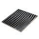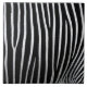 Este diseño presenta una fotografía de primer plano de las rayas blancas y negras sobre la piel de una cebra, creando un patrón muy atractivo. Las cebras son animales equinos africanos relacionados con caballos europeos. Tradicionalmente habitan diversos tipos de hábitats, como sabanas, praderas, bosques, arbustos y zonas montañosas de África meridional y oriental. Las franjas audaces y distintivas de las cebras las convierten en una de las más reconocibles de los mamíferos; por esa razón, han destacado de manera prominente en el arte y las historias de África y de todo el mundo.