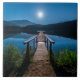 Baldosas de cerámica con una hermosa fotografía de un muelle de madera que se extiende sobre un lago tranquilo. Cielo nocturno cubierto de estrellas y una hermosa luna llena.
