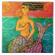 Mi colorida pintura abstracta de sirena impresa en una cerámica