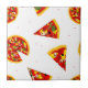 Coloridas baldosas de cerámica con tema de pizza. Moda moderna y divertida de rodajas circulares completas y triangulares, de pizzas totalmente cargadas. Perfecto para pizzerías, chefs, cocinas y todo aquel que ame las pizzas. Copyright Bridget Edmonds, todos los derechos reservados. #zazzlemade