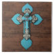 Placa de pared con cruz ornamentada. © Radenbrea Studios en Zazzle. Esta cruz ornamentada impresa tiene un corazón en llamas, junto con pergaminos y gemas rojas. El fondo de la placa tiene un aspecto de madera impresa. Esta placa de pared hará un gran arte en cualquier decoración.