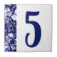 La decoración de la baya y de la barra lateral de la vid en esta baldosa número casa está en un azul y blanco crujiente y tradicional. Agregue el número de su elección y apile verticalmente varios números. Utilice la función de edición de plantilla.