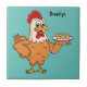 ¡Este pollo gracioso sirve huevos para la cena! Dibujado al estilo personalizado feliz.