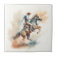 Azulejo Polvorienta acuarela occidental "Bucking Bronco"