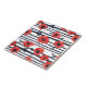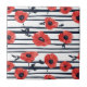 Azulejo Poppies rojos con hojas azules y patrón rayado 3