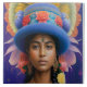 Azulejo princesa asiática con sombrero azul grande