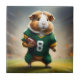 Representado en el Campo de Footy con su Uniforme de Fútbol Americano y Llevando un Balón de Fútbol Americano está Footy Marmota.