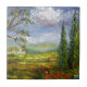 Pintura gruesa de Impasto de los pueblos distantes de Toscana. Con Cypress italiano y las amapolas. Pintura del cuchillo de paleta por la marca Mazzarella de "Mazz" del artista. © 2014 de Copyright