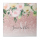 Azulejo Purpurina rosa moderno y flores esparcen con nombr