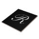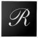 Monograma clásico de letra blanca sobre fondo negro, R.