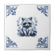 Azulejo Raccoon Delft Esquinas Blancas Azules Animales Woo
