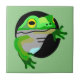 Rana verde, este diseño presenta una linda rana verde mirando a través de un agujero.