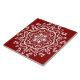 Esta mandala blanca se sienta sobre un fondo rojo oscuro. El color es profundo y cálido. Parte de la colección Losonieth Mandala.