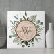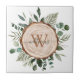 Lleve la belleza de la naturaleza a su hogar con nuestra baldosa de cerámica de rebanada de madera rústica de acuarela con monograma y follaje. ¡Un toque de elegancia de bosque y encanto campestre para su espacio! Agregue la inicial del nombre de su familia y hágalo suyo
