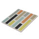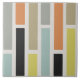 Patrón de arte abstracto moderno de mediados de siglo con largos rectángulos verticales en múltiples colores de verde turquesa claro, oro, beige o marrón, amarillo, naranja y negro.