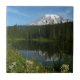 Azulejo Reflejo del lago del Monte Rainier con flores silv