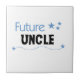 Futuras cajas de sake Uncle keepsake, azulejos, ornamentos, cuadernos, tazas, imanes, tarjetas, botones, cascos, cadenas de claves, y otras prendas de vestir y artículos de regalo de futuros tíos con un texto azul y negro y diseño de estrellas.