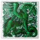 De Morgan (1839-1917) fue un importante artista del movimiento Artes y Artesanía y fue el jefe de la producción de azulejos en el estudio de William Morris. Su trabajo estuvo influenciado por el arte persa e islámico y presentó una flora y fauna estilizadas tanto de la vida como de la fantasía. Esta fantástica baldosa (en más de una forma) muestra un dragón verde con su bebé.
