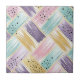 Una cerámica abstracta y viva con pinceles anchos y texturados en rosa pastel, púrpura, verde azulado y blanco suave, intersectada por líneas doradas delgadas y brillantes que forman un efecto cruzado trenzado y diagonal. Los especkles negros y blancos de juego se dirigen a secciones seleccionadas, añadiendo profundidad y contraste. Este vibrante y moderno patrón combina elegancia con estilo artístico, ideal para una estética creativa y colorida con un toque de glamour.