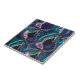 Esta baldosa presenta un patrón geométrico abstracto hipnotizante, que recuerda a las rodajas de agate naturales. El diseño combina el azul profundo, las violetas y las tetas, con detalles como el cristal y el oro brillantes. Ideal para añadir un toque de elegancia natural y de arte moderno a cualquier espacio.