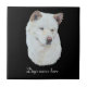 Azulejo retrato de asombroso perro akita blanco