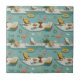 Ceramic Tile - Vintage-inspired poolside scene with pink flamingos, lounge chairs, cocktails, and sunny vibes in a retro summer aesthetic. Ideal for beach lovers, vacation fans, and those who enjoy fun, nostalgic designs.