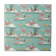 Ceramic Tile - Vintage-inspired poolside scene with pink flamingos, lounge chairs, cocktails, and sunny vibes in a retro summer aesthetic. Ideal for beach lovers, vacation fans, and those who enjoy fun, nostalgic designs.
