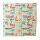 Ceramic Tile - Vintage-inspired poolside scene with pink flamingos, lounge chairs, cocktails, and sunny vibes in a retro summer aesthetic. Ideal for beach lovers, vacation fans, and those who enjoy fun, nostalgic designs.