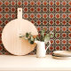 Añada el encanto de la arquitectura Revival Colonial Español a su hogar con este hermoso azulejo cerámico. El diseño muestra un clásico patrón geométrico en terracota, crema, azul y verde. Este aspecto intrincado y hecho a mano es ideal para añadir un toque de elegancia antigua a cocinas, baños, chimeneas o paredes de acento. Ideal para añadir un elemento de diseño a cualquier espacio.