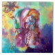 Escena de balcones de la tragedia de Romeo y Juilet por William Shakespeare. Pintura original contemporánea de acuarela con Relieve metalizado dorado y colores iridiscentes en color violeta brillante, rosa, verde, naranja amarillo, verde azulado, turquesa, blanco... Pintado por Bulgan Lumini (c)