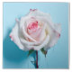 Azulejo Rosa mojado blanco sobre fondo azul turquesa