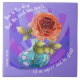 Baldosas florales de colores vivos con flores pintadas; rosa lleno florece en un jarrón de agua, sobre un chorro de violeta. "Este es el día que el Señor ha hecho, regocijémonos y regocijémonos!" Accesorio perfecto para añadir un toque de bendiciones y un toque de color a tu cocina (o a cualquier otra habitación de la casa). Usa como trivet, o como arte.