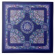 Dibujo de una vidriera de una antigua iglesia europea: una ventana rosa con toques de colores muy variados, como el azul, sobre un fondo azul marino. Entrada de diamantes de imitación azules. Este motivo también está disponible en rojo cardinal en mis colecciones de "rosácea roja cardinal".
