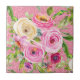Azulejo Rosas acuarelas en rosa y crema en Purpurina rosa