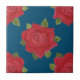 Un mosaico cerámico de moda al personalizar, con un patrón de rosas rojas en todo el mundo, sobre un fondo azul profundo que se puede cambiar fácilmente si se desea. Parte de la colección "Corazones y Rosas" de Posh & Painterly de Judy Adamson, este patrón se puede ajustar para que se ajuste a cualquier mosaico cerámico. (Añadir un marco de madera para usar como Trivet.)