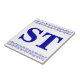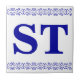 Letra victoriana mosaico - azul sobre blanco con el borde de una impresora. Haz señales de azulejos. Dos letras.