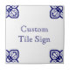 Signo de mosaico personalizado. Estilo de azulejos español. Azul con fondo blanco. Se pueden solicitar colores personalizados.