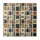 Earthy geometric pattern ceramic tile inspired by tribal mudcloth textiles, featuring hand-painted rectangles, diamonds, and triangles in charcoal black and terracotta on a textured beige background. A warm boho design ideal for rustic décor lovers, artisan style fans, and anyone drawn to earthy geometric aesthetics.