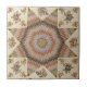 This elegant square ceramic tile features a vintage patchwork quilt Star of Bethlehem (Lone Star) pattern, in a lovely palette of earthy mocha brown and dusty pink tones, with light blue accents. Enjoy the stiches and needlework of the original quilt, and the floral antique rose accents that complete the look. The motif is rustic, but has a geometric, stylish look. Great for bathroom, kitchen counter/backsplash, fireplace surround, or to use as a trivet. Complements traditional, modern farmhouse, and more contemporary decorating styles.