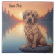 Sabueso sentado junto a un lago al atardecer. Agrega esta imagen a otros productos. Agrega tu propio texto también. Cambia el color de fondo. Muchos animales en mi tienda.