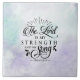 Hermosa cita inspiradora de azulejos de cerámica representa un fondo abstracto de color azul y lavanda y muestra una parte de la Biblia Verse Salm 118:14, "El Señor es mi Fuerza y mi Canción".